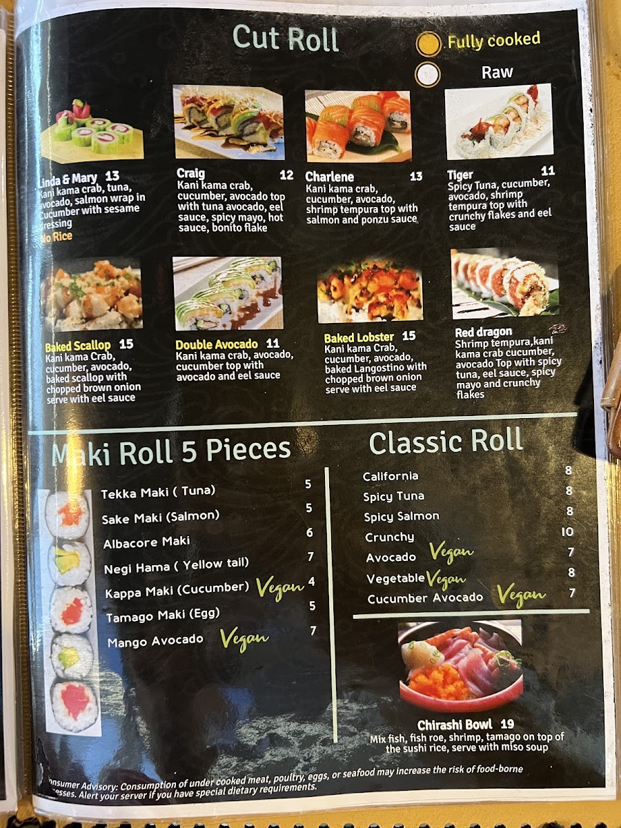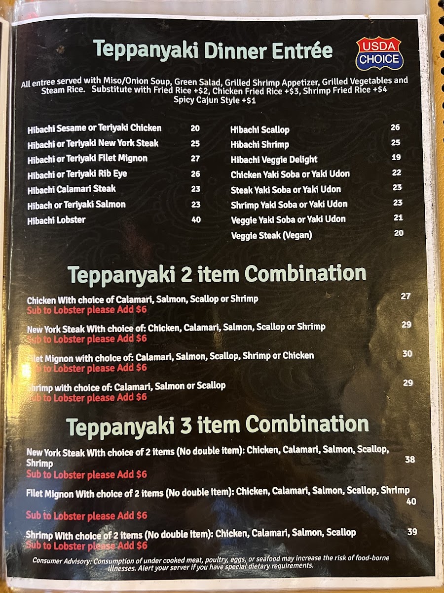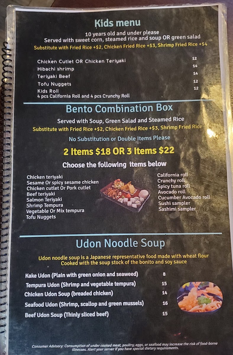 Sushi enthusiasts will appreciate the selection of Sushi Rolls, each one crafted with care and filled with vibrant flavors. For a bit more variety, try the 2 Item Combo Scallop and Chicken, which offers a satisfying mix of protein. Vegetarians will enjoy the Vegetable Tempura, light and crispy, offering a delightful contrast to the other richer dishes.